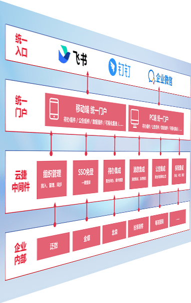对协作平台提供支持服务,,,支持企业应用与协作平台对接,,,,包含组织同步、、、、消息集成、、、待办集成等。。支持目前主流的协作平台:钉钉、、、、企微和飞书。。